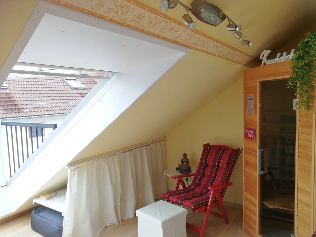 Im Dachgeschoss steht unsere Infrarotkabine (Bio-Sauna) und ein Hometrainer zur Verfügung.