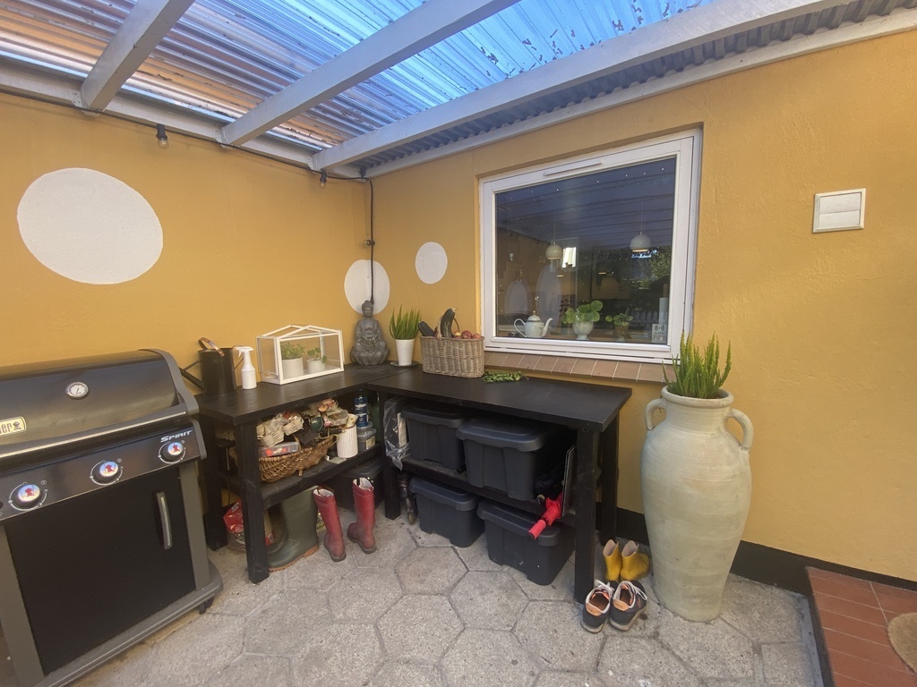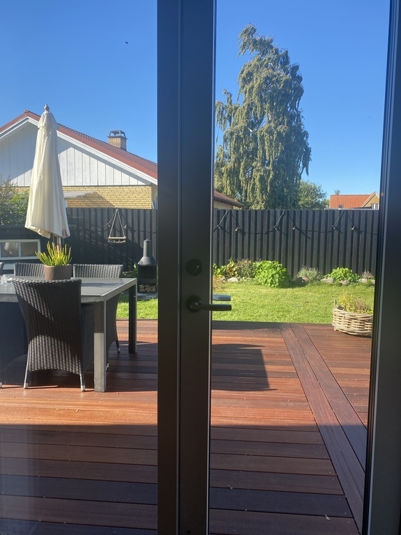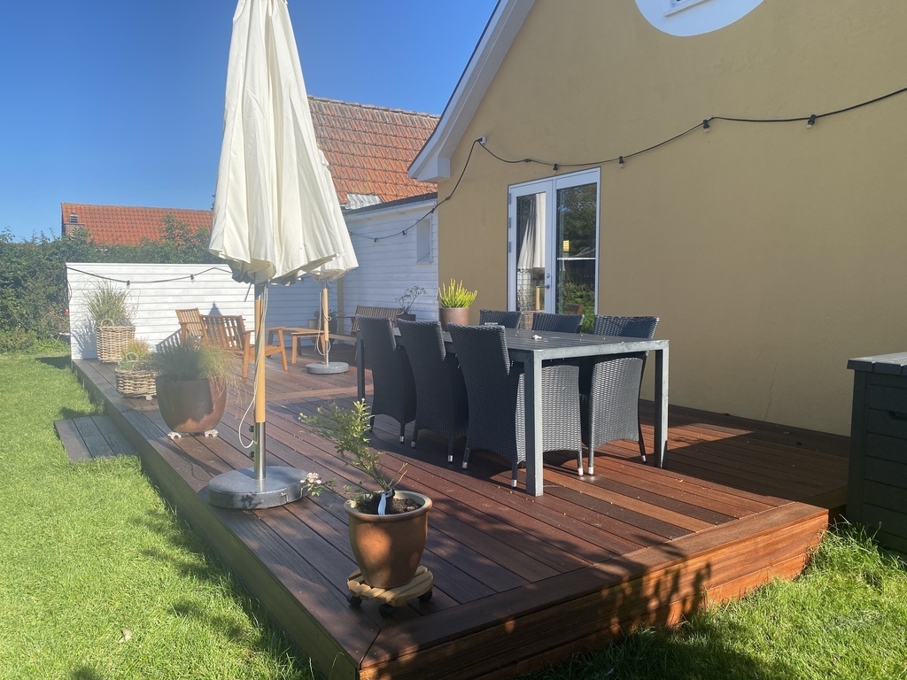 The house has a charming private garden with a large trampoline, a large wooden terrace, and a porch to relax at.