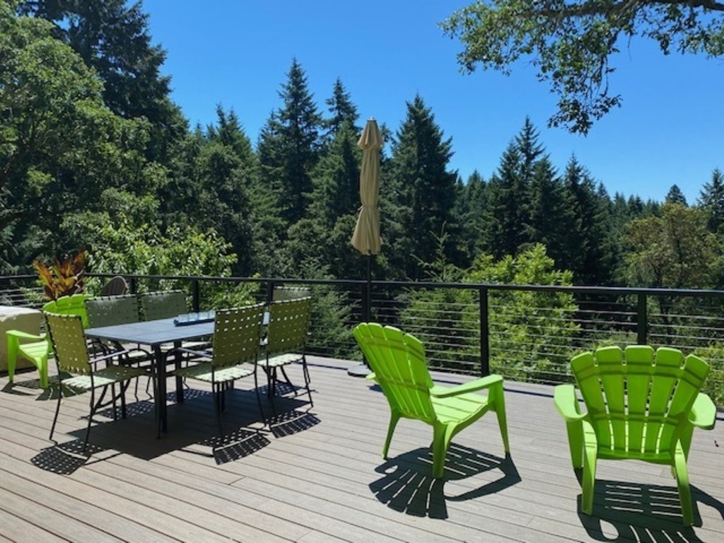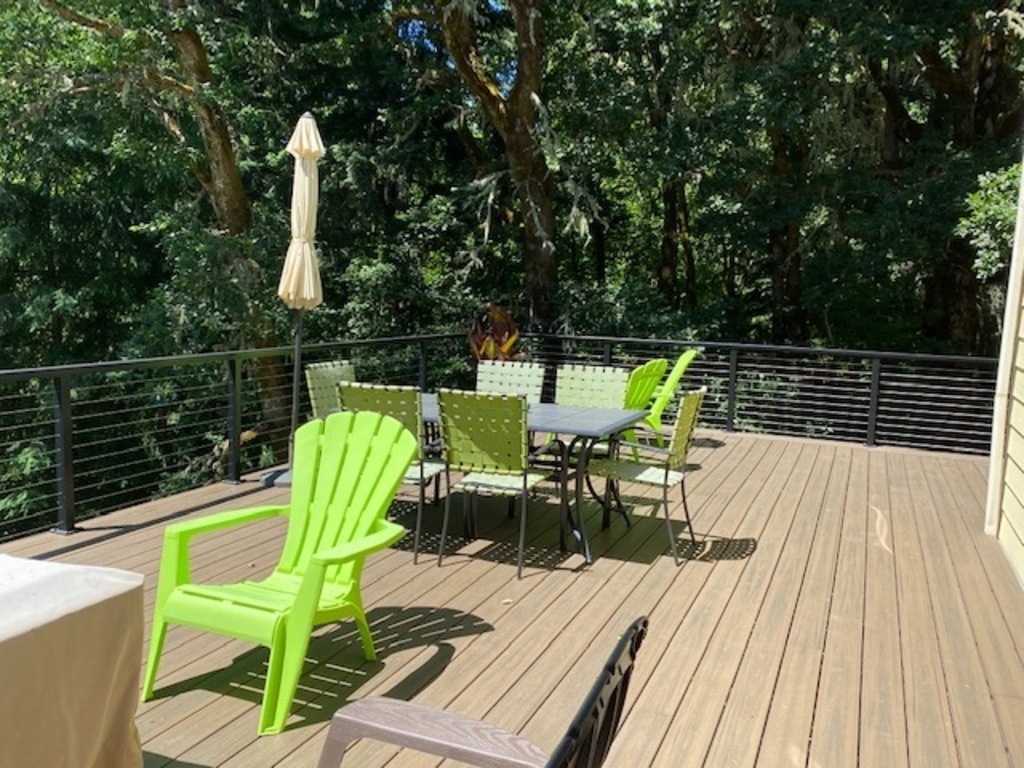 Our 3,500 square foot home sits on 5 wooded acres, a 20 minute drive to downtown Eugene and the University of Oregon. Eugene is the original home of Nike, "Track Town USA", where the Olympic Trials are often held. We are down the road from Fern Ridge Lake with parks, swimming, picnic areas, kayak/canoe rentals, paddle-boarding and fishing. We also have 100 acres of groomed hiking trails right below our property for the use of our neighborhood. We are located in the heart of wine country, the Willamette Valley being one of the premier wine-making regions in the world for Pinot Gris and Pinot Noir, with over 25+ wineries nearby. Lots of craft beer pubs and tasting rooms in our area. Our home is approx. 45 minute drive to ocean beaches, near several rivers and lakes, and about an hour to the local snow ski resort in the winter months. We are less than 2 hours to Portland, and a few hours to Crater Lake National Park (7th deepest lake in the world), both which can be done as a day trip. There are also several golf courses nearby. Eugene has some great restaurants and an active nightlife. There is the Eugene Saturday Market with crafts, food and music. During July, the neighboring town of Elmira hosts the Oregon Country Fair, a festival that is known throughout the US. The Eugene airport is only 10 miles from our home.