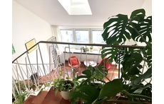 We live in the middle of Munich, near the main station. The neighborhood is lively and international, but the apartment itself is located in a quiet corner, in an apartment building, on the 5th and 6th floor. It has 4 bedrooms, two bathrooms and a separate WC, a balcony and a terrace. There is a large kitchen which is well equipped: dish washer, stove and oven, microwave, blender, KitchenAid and more. Just around the corner there are many greengrocers, restaurants and supermarkets.