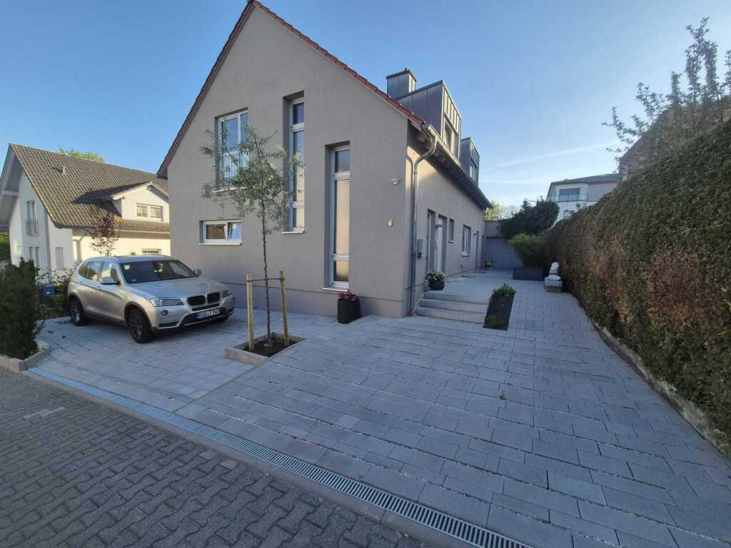 Unser Haus liegt in einer Einbahnstraße und der Garten grenzt an den Stadtpark (mit direktem Zugang). Unser Zuhause hat im EG einen offenen Wohn-Essbereich mit großer Küche, ein Büro/Garderobe und Bad mit Dusche. Im OG befinden sich 4 Zimmer (1 Elternschlafzimmer, 1 Kinderzimmer mit einem Einzelbett (120x200cm), 2 Kinderzimmer mit je einem King Size Bett sowie ein Bad mit Dusche & Badewanne. Im UG haben wir ein weiteres Büro, indem sich auch ein ausziehbares Schlafsofa befindet (max. 2 Personen, eher als vorübergehende Schlafmöglichkeit gedacht, da das Zimmer recht klein ist). Angrenzend an das Haus haben wir eine 60 qm zum Teil überdachte Terrasse.