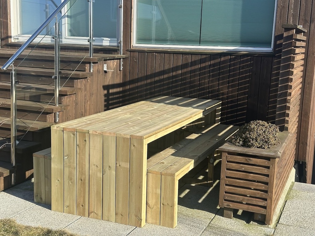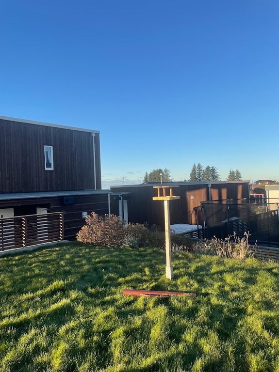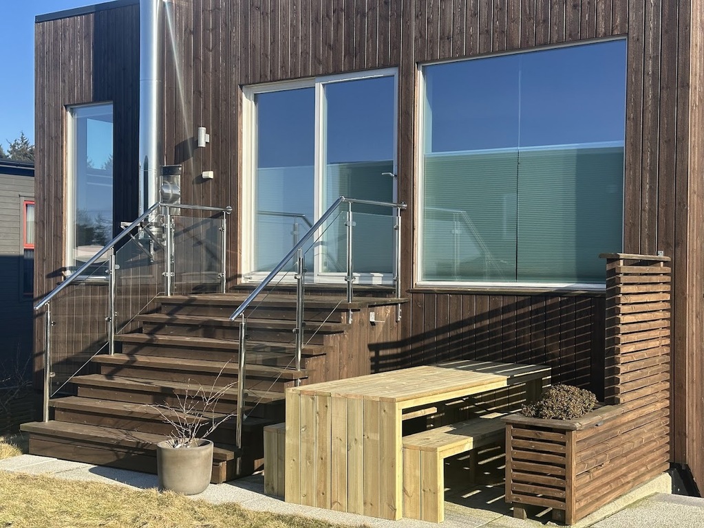 Moderne hus på to etasjer med fire soverom, to bad, tv-stue og stor stue. Huset har kjøkkenterrasse, hage med hyggelige uteområder og utekjøkken. Det er soveplass til 5, men har dere flere barn kan man også bruke den doble sovesofaen i kjellerstuen.