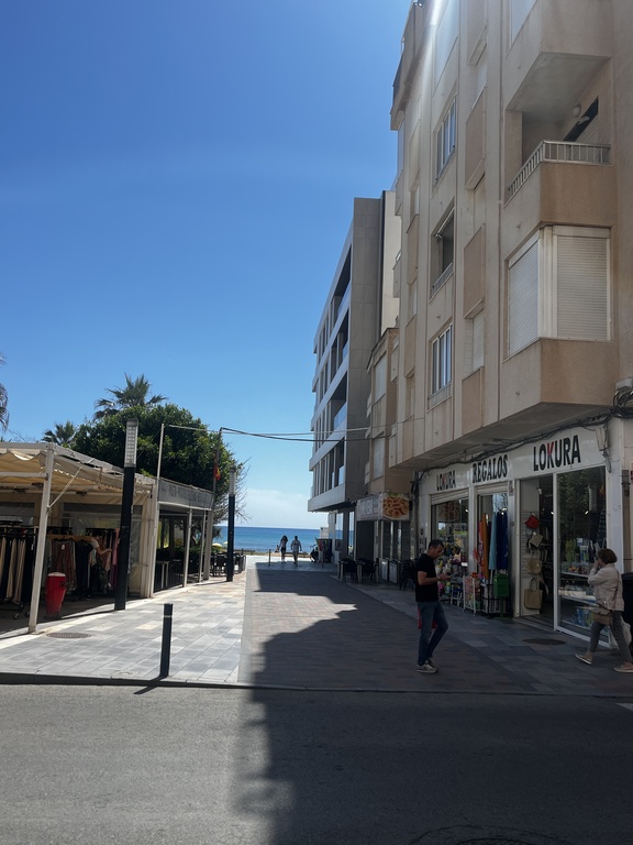 Apartamentos en la plaza Mayor de un pueblo costero alicantino. Con vista a 20 metros de la mejor playa de arena de Torrevieja, en un lugar ambientado con personas de todas las nacionalidades y con los mejores restaurantes de la zona. Ideal para rutas costeras o por las pinadas que rodean el lago de La Mata. A 35 km. del aeropuerto. A 50 de Murcia o Alicante.
